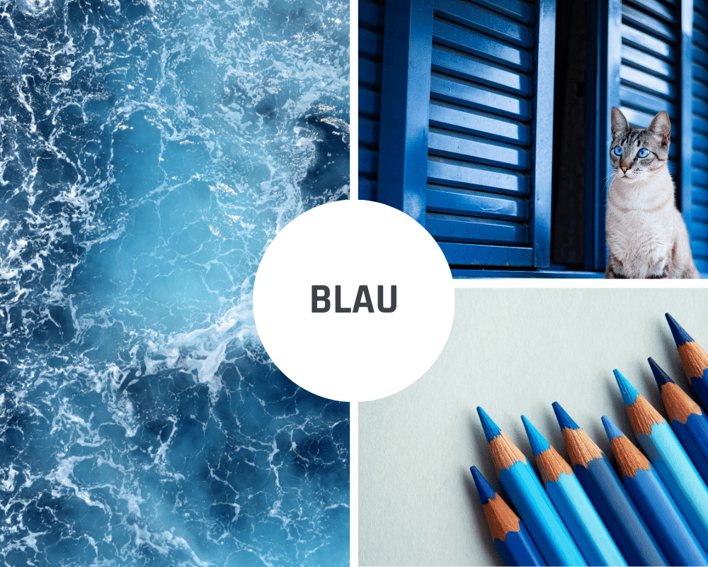 Wenn Verlässlichkeit, Kompetenz und Sicherheit vermittelt werden sollen, ist ein Blauton die Farbe der Wahl. Je nach Nuance kann Blau aber noch ganz andere Assoziationen wecken. Das helle Blau des Himmels oder Türkis des Wassers suggerieren Weite, lassen die Sinne schweifen und erzeugen ein Gefühl von Frische, Ruhe und Fantasie. Während graublaue Töne eher Gediegenheit und Tradition wiederspiegel. Dunkelblau kann je nach Intensität sehr tiefgründig, geheimnisvoll und seriös wirken. Die Palette reicht von himmelblau, babyblau, marine, royalblau bis nachtblau und viele mehr.