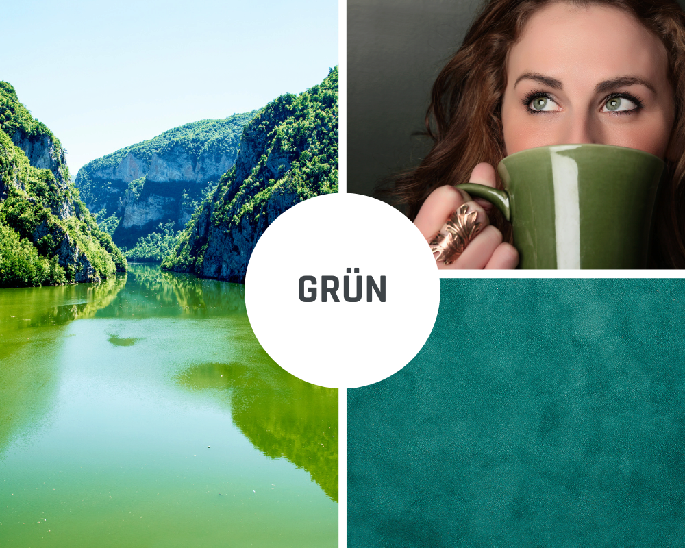Die Mischfarbe aus Blau und Gelb wird je nach Nuance mal mehr mit Natur und Lebendigkeit oder mit Reinheit und Hygiene in Verbindung gebracht. Bei Grün denken wir sofort an Umwelt, Gesundheit, Wohlbefinden, falsch eingesetzt aber auch an Ekel oder Übelkeit. Deshalb muss der Ton sorgfältig gewählt werden. Dunkles Grün wirkt edel, gediegen und traditionell. Strahlendes Grün kann sehr schön zu Schwarz als Kontrast gesetzt werden. Für System-Meldungen in der IT gilt grün als "erfolgreich". Die Palette ist breit gefächert von apfelgrün, moosgrün, neongrün, tannengrün, limette, khaki, giftgrün usw.