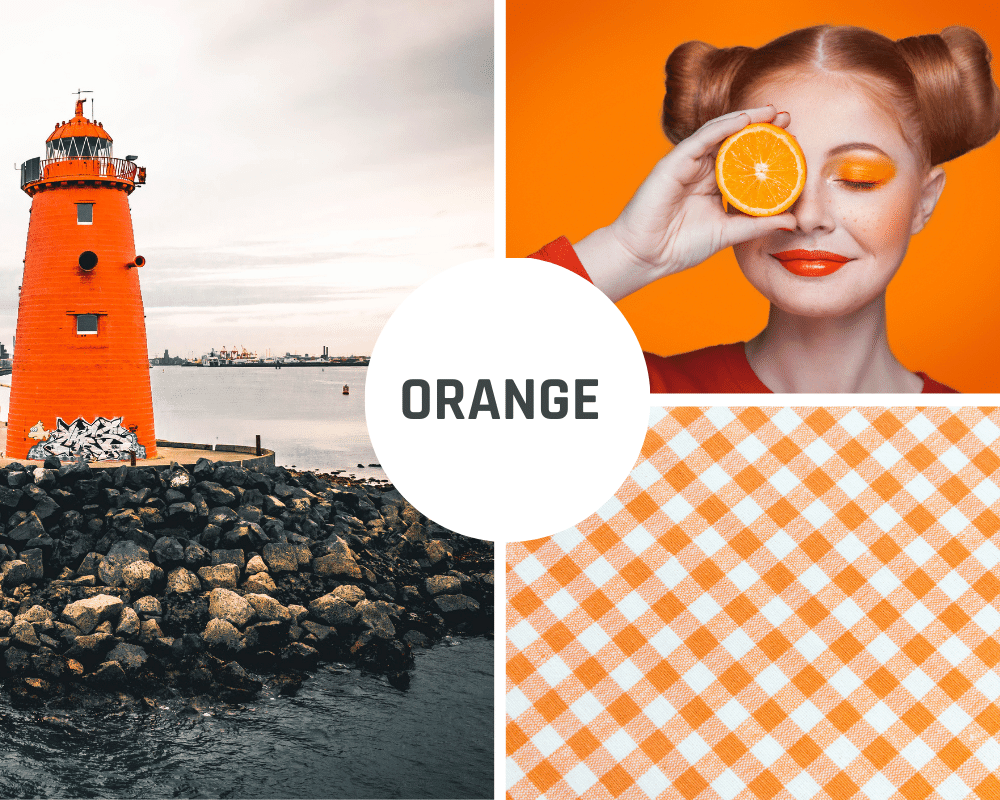 Die Mischfarbe aus Rot und Gelb wirkt warm, frech und aktiv. Zu viel Orange kann aber aufdringlich empfunden werden. Billig-Angebote werden oft in dieser Farbe anpriesen, daher ist bei der Verwendung von Orange Vorsicht angesagt (die Nuance entscheidet). Im dunkleren Bereich ist die Erscheinung eher erdig, gemütlich und bodenständig. Aufgrund seiner auffallenden Erscheinung eignet es sich - wo es ins Farbkonzept passt - gut als Call-to-Action-Farbe. Nuancen sind unter anderem apricot, lachsorange, koralle, karotte, terracotta.