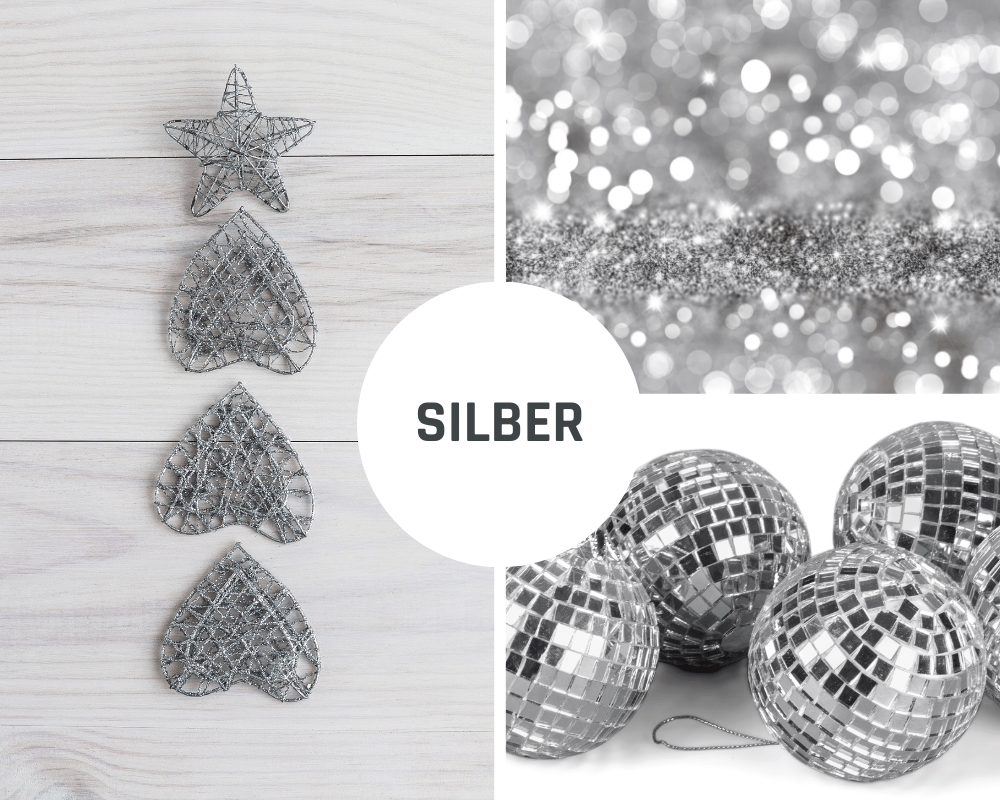Grundsätzlich ist Silber - wie Grau - eine eher zurückhaltende Farbe. Doch durch den Glamour-Faktor wirkt es edel, cool oder stylisch. Dieser Effekt wird im Wesentlichen über eine entsprechend verwendete Bildwelt erzeugt, denn als Farbton ist Silber natürgemäß ein Grauton. Je nach gewünschter Wirkung kann Silber mit den verschiedensten Farbtönen kombiniert werden, da es selbst sehr neutral ist und in den Hintergrund tritt. Silbertöne können heller oder dunkler oder auch "schimmernde" Farbverläufe dargestellt werden.