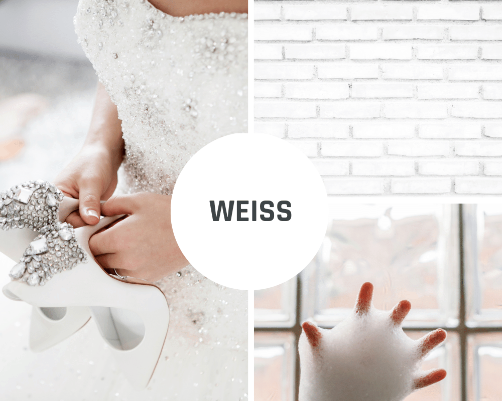 Reines Weiß ist genau genommen keine Farbe, sondern "die Summer aller Farben". Aufgrund seiner Neutralität tritt Weiß in den Hintergrund und lässt anderen Farben den Vortritt. Auch hier gibt es eine Vielzahl von Nuancen und Abstufungen, wie schneeweiß, cremeweiß, muschelweiß, altweiß, wollweiß, perlweiß usw. Leicht farblich getöntes Weiß erzeugt - je nach Farbton - ganz verschiedene Stimmungen (von kühl bis heimelig). Der Begriff "Weißraum" in der Designer-Sprache bezeichnet einen leeren Raum, um Gestaltungselemente wirken zu lassen und für bessere Lesbarkeit und Usability.