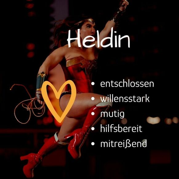 Als Heldin glaubst du an deine Stärken, triffst schnelle Entscheidungen und gibst alles um die Welt zu retten. Du hast hohe Ideale und kämpfst für Dinge, die dir wichtig sind. Probleme sind für dich einzig dazu da, um gelöst zu werden. Egal wie schwer oder "sportlich" der Kampf sein wird.
