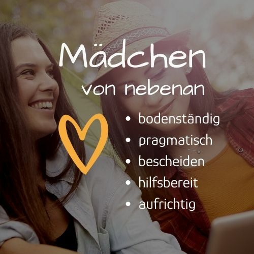 Als Mädchen von nebenan bist du einfach, bodenständig, hilfsbereit und bescheiden. Es ist dir nicht wichtig aus einer Masse herauszustechen, sondern du bist lieber unauffällig, möchtest einfach zu einer Gemeinschaft gehören und dich dort akzeptiert und sicher fühlen. Du bist pragmatisch und schätzt Qualität. Mit einer realistischen Sicht auf die Welt erreichst du durch harte Arbeit solide Werte.